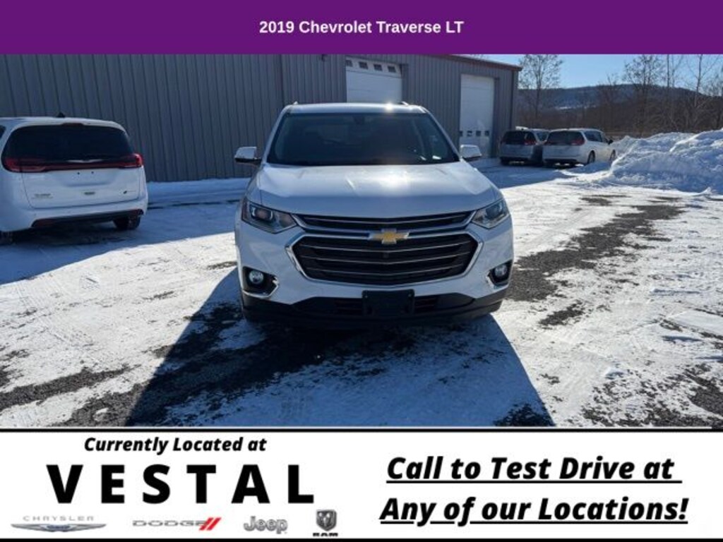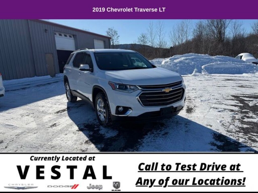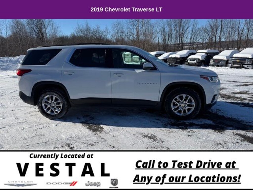 AWD, 3.49 Axle Ratio, 3rd row seats: split-bench, 4-Wheel Disc Brakes, 6 Speakers, 7-Passenger Seating (2-2-3 Seating Configuration), ABS brakes, Air Conditioning, Alloy wheels, AM/FM radio: SiriusXM, Apple CarPlay/Android Auto, Automatic temperature control, Bluetooth, Brake assist, Bumpers: body-color, Compass, Delay-off headlights, Driver door bin, Driver vanity mirror, Dual front impact airbags, Dual front side impact airbags, Electronic Stability Control, Emergency communication system, Four wheel independent suspension, Front anti-roll bar, Front Bucket Seats, Front Center Armrest, Front dual zone A/C, Front fog lights, Front License Plate Bracket Mounting Package, Front reading lights, Fully automatic headlights, Garage door transmitter, Heated door mirrors, Heated front seats, Heavy-Duty Cooling System, High-Intensity Discharge Headlights, Illuminated entry, Low tire pressure warning, Occupant sensing airbag, Outside temperature display, Overhead airbag, Overhead console, Panic alarm, Passenger door bin, Passenger vanity mirror, Power door mirrors, Power driver seat, Power Liftgate, Power steering, Power windows, Preferred Equipment Group 1LT, Premium Cloth Seat Trim, Radio data system, Radio: Chevrolet Infotainment AM/FM w/8" Screen, Rear air conditioning, Rear anti-roll bar, Rear reading lights, Rear window defroster, Rear window wiper, Remote keyless entry, Roof rack: rails only, Security system, SiriusXM Radio, Speed control, Speed-sensing steering, Spoiler, Steering wheel mounted audio controls, Tachometer, Telescoping steering wheel, Tilt steering wheel, Traction control, Trailering Equipment, Trip computer, Turn signal indicator mirrors, Variably intermittent wipers, Wheels: 18" Bright Silver Painted Aluminum, AWD. 2019 Chevrolet Traverse 4D Sport Utility LT Summit White Cloth w/1LT AWD 9-Speed Automatic 3.6L V6 SIDI VVT