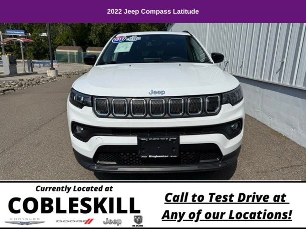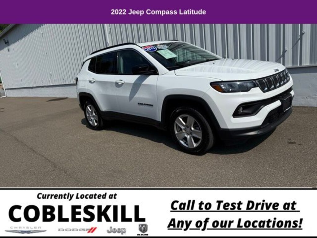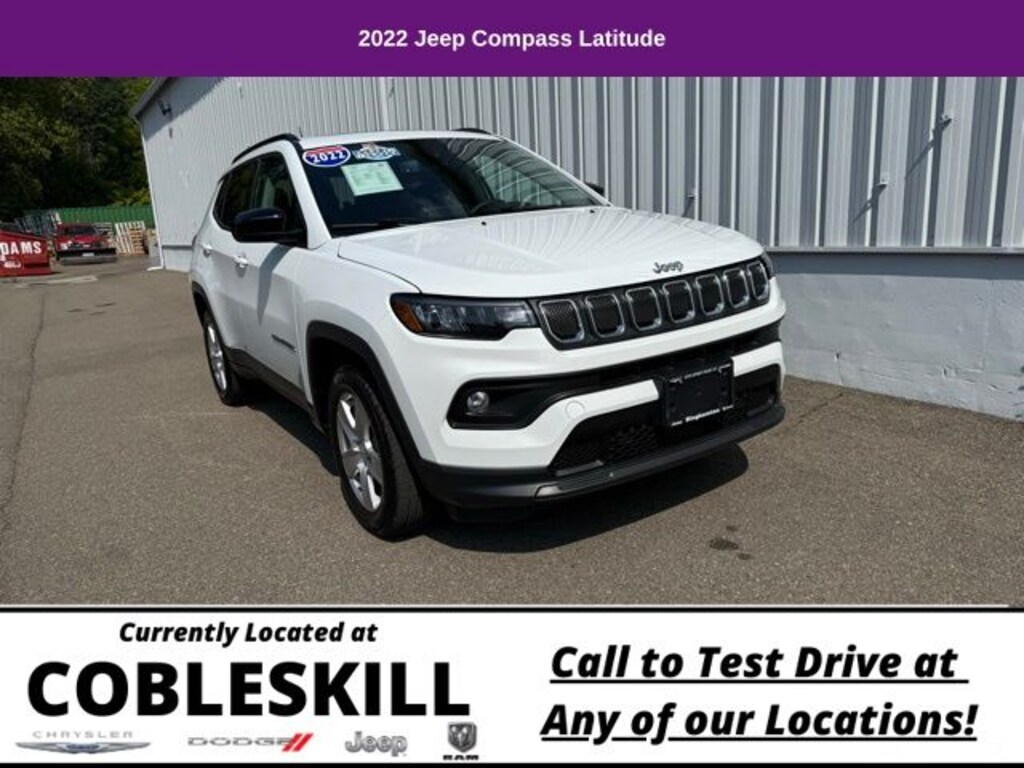 Save Time at the Dealership by Customizing your Deal Online!, 4WD, 115V Auxiliary Power Outlet, 17" x 7" Painted Aluminum Wheels, 2nd Row USB Type A/C Charge Only, 3.73 Axle Ratio, 4-Wheel Disc Brakes, 6 Speakers, ABS brakes, Air Conditioning, Air Conditioning ATC w/Dual Zone Control, All-Season Floor Mats, Alloy wheels, AM/FM radio: SiriusXM, Anti-whiplash front head restraints, Auto High-beam Headlights, Auto-Dimming Rear-View Mirror, Brake assist, Bumpers: body-color, Compass, Convenience Group, Delay-off headlights, Driver door bin, Driver vanity mirror, Dual front impact airbags, Dual front side impact airbags, Electronic Stability Control, Emergency communication system: SiriusXM Guardian, Foot Activated Open 'N Go Liftgate, Four wheel independent suspension, Front anti-roll bar, Front Bucket Seats, Front Center Armrest w/Storage, Front fog lights, Front License Plate Bracket, Front reading lights, Fully automatic headlights, Heated door mirrors, Heated Front Seats, Heated Steering Wheel, Humidity Sensor, Illuminated entry, Knee airbag, Leather Shift Knob, Leather Wrapped Steering Wheel, Low tire pressure warning, Occupant sensing airbag, Outside temperature display, Overhead airbag, Overhead console, Panic alarm, ParkView Rear Back-Up Camera, Passenger door bin, Passenger vanity mirror, Power Adjust 8-Way Driver Seat, Power door mirrors, Power Front/Fixed Rear Full Sunroof, Power Liftgate, Power steering, Power windows, Premium Alpine Speaker System, Premium Cloth/Vinyl Bucket Seats, Quick Order Package 2GJ, Radio: Uconnect 5 w/10.1" Display, Radio: Uconnect 5 w/8.4" Display (DISC), Rear anti-roll bar, Rear seat center armrest, Rear window defroster, Rear window wiper, Remote keyless entry, Remote Start System, Reversible Carpet/Vinyl Cargo Mat, Roof rack: rails only, Security Alarm, Speed control, Split folding rear seat, Spoiler, Steering wheel mounted audio controls, Sun and Sound Group, Tachometer, Telescoping steering wheel, Tilt steering wheel, Traction control, Trip computer, Universal Garage Door Opener, Variably intermittent wipers, Vehicle Information Center, Windshield Wiper De-Icer, 4WD. 2022 Jeep Compass 4D Sport Utility Latitude SUN AND SOUND PKG HEATED SEAT/WHEEL 4WD 9-Speed 948TE Automatic 2.4L I4 Bright White Clearcoat