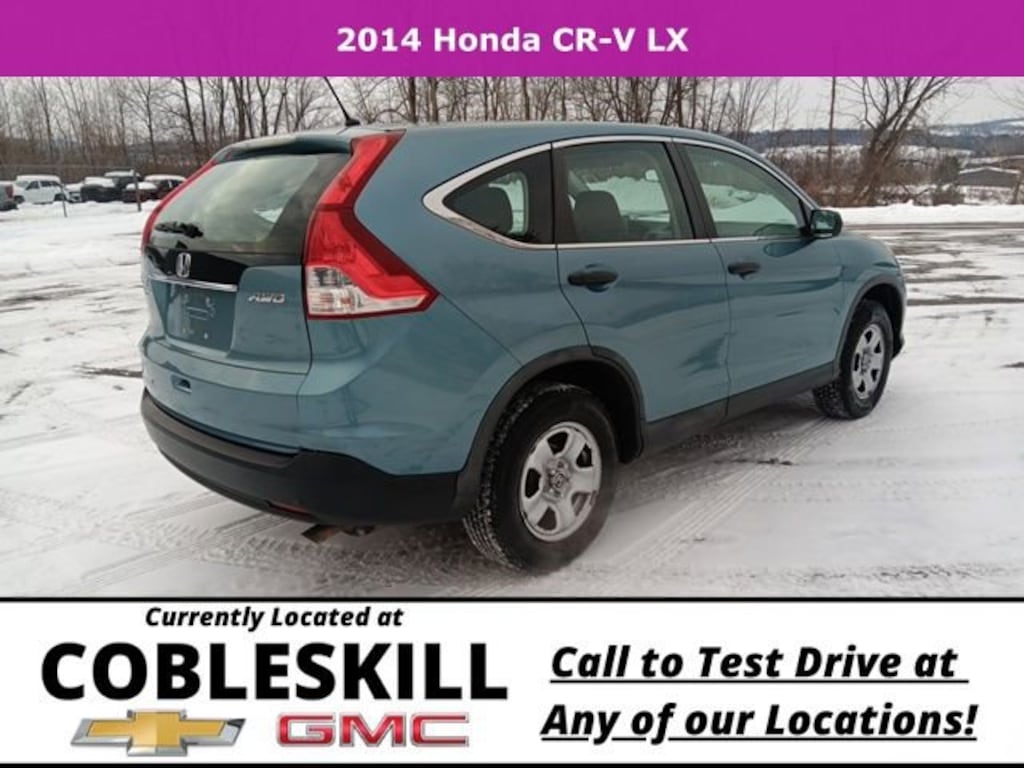 Save Time at the Dealership by Customizing your Deal Online!, AWD, 16 Styled Steel Wheels, 4-Wheel Disc Brakes, ABS brakes, Air Conditioning, AM/FM/CD Audio System w/4 Speakers, Brake assist, Delay-off headlights, Dual front impact airbags, Dual front side impact airbags, Electronic Stability Control, Four wheel independent suspension, Front anti-roll bar, Front Bucket Seats, Low tire pressure warning, Occupant sensing airbag, Outside temperature display, Overhead airbag, Overhead console, Panic alarm, Power door mirrors, Power steering, Power windows, Rear anti-roll bar, Rear window wiper, Speed control, Speed-sensing steering, Steering wheel mounted audio controls, Tachometer, Telescoping steering wheel, Tilt steering wheel, Traction control, 4 Speakers, 4.44 Axle Ratio, AM/FM radio, Bumpers: body-color, CD player, Cloth Seat Trim, Compass, Driver door bin, Driver vanity mirror, Driver's Seat Mounted Armrest, Exterior Parking Camera Rear, Front reading lights, Illuminated entry, Passenger door bin, Passenger vanity mirror, Radio data system, Rear seat center armrest, Rear window defroster, Remote keyless entry, Split folding rear seat, Trip computer, AWD, 16 Styled Steel Wheels, 4-Wheel Disc Brakes, ABS brakes, Air Conditioning, AM/FM/CD Audio System w/4 Speakers, Brake assist, Delay-off headlights, Dual front impact airbags, Dual front side impact airbags, Electronic Stability Control, Four wheel independent suspension, Front anti-roll bar, Front Bucket Seats, Low tire pressure warning, Occupant sensing airbag, Outside temperature display, Overhead airbag, Overhead console, Panic alarm, Power door mirrors, Power steering, Power windows, Rear anti-roll bar, Rear window wiper, Speed control, Speed-sensing steering, Steering wheel mounted audio controls, Tachometer, Telescoping steering wheel, Tilt steering wheel, Traction control. 2014 Honda CR-V LX AWD 5-Speed Automatic 2.4L I4 DOHC 16V i-VTEC BlueOdometer is 56903 miles below market average! 22/30 City/Highway MPGAwards:* 2014 KBB.com Brand Image AwardsKelley Blue Book Brand Image Awards are based on the Brand Watch(tm) study from Kelley Blue Book Market Intelligence. Award calculated among non-luxury shoppers. For more information, visit www.kbb.com. Kelley Blue Book is a registered trademark of Kelley Blue Book Co., Inc.Reviews:* The 2014 Honda CR-V is as comfortable mushing through unplowed streets as it is circling the flea market ready to haul home some vintage antiques. Excellent fuel economy, a very reasonable price, and a near flawless repair record should seal the deal. Source: KBB.com* Abundant passenger and cargo room; good fuel economy; user-friendly controls; ample standard tech features; strong crash test scores. Source: Edmunds