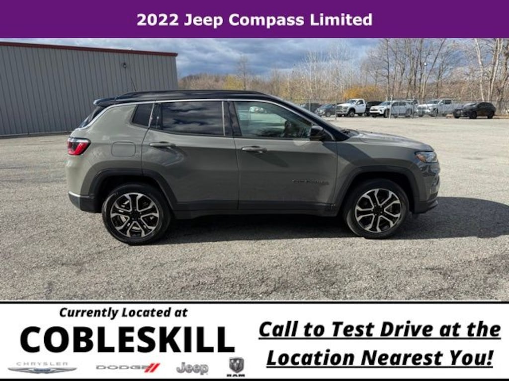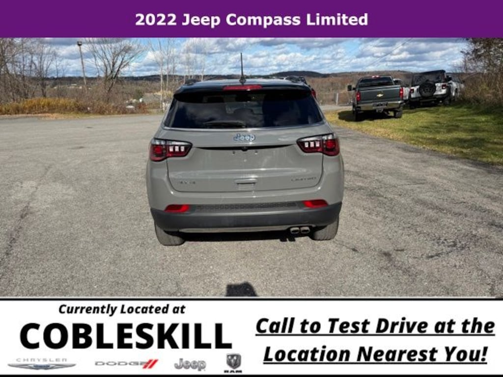 Save Time at the Dealership by Customizing your Deal Online!, 4WD, 10.1" Touchscreen Display, 3.73 Axle Ratio, 4-Wheel Disc Brakes, 6 Speakers, ABS brakes, Air Conditioning, Alloy wheels, AM/FM radio: SiriusXM, Anti-whiplash front head restraints, Auto High-beam Headlights, Auto-dimming Rear-View mirror, Automatic temperature control, Brake assist, Bumpers: body-color, Compass, Delay-off headlights, Disassociated Touchscreen Display, Driver door bin, Driver vanity mirror, Dual front impact airbags, Dual front side impact airbags, Electronic Stability Control, Emergency communication system: SiriusXM Guardian, Four wheel independent suspension, Front anti-roll bar, Front Bucket Seats, Front Center Armrest w/Storage, Front dual zone A/C, Front fog lights, Front License Plate Bracket, Front reading lights, Fully automatic headlights, Global Telematics Box Module (TBM), Gloss Black Exterior Mirrors, Heated door mirrors, Heated front seats, Heated steering wheel, Illuminated entry, Knee airbag, Leather Shift Knob, Leather Trimmed Bucket Seats, Low tire pressure warning, Occupant sensing airbag, Outside temperature display, Overhead airbag, Overhead console, Panic alarm, ParkView Rear Back-Up Camera, Passenger door bin, Passenger vanity mirror, Power door mirrors, Power driver seat, Power steering, Power windows, Quick Order Package 2GG, Radio: Uconnect 5 w/10.1" Display, Rain sensing wipers, Rear anti-roll bar, Rear seat center armrest, Rear window defroster, Rear window wiper, Remote keyless entry, Roof rack: rails only, Security system, Speed control, Split folding rear seat, Spoiler, Steering wheel mounted audio controls, Tachometer, Telescoping steering wheel, Tilt steering wheel, Traction control, Trip computer, Turn signal indicator mirrors, Variably intermittent wipers, Wheels: 18" x 7" Painted Diamond Cut Aluminum, 4WD. Odometer is 2137 miles below market average! 2022 Jeep Compass 4D Sport Utility Limited 4WD 9-Speed 948TE Automatic 2.4L I4 Sting-Gray Clearcoat
